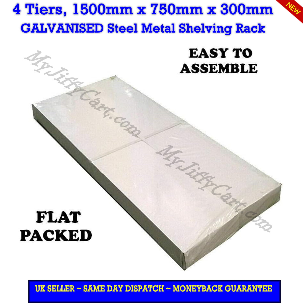 • 4 Tiers, GALVANISED Steel, Metal Shelving Racking Storage units for Home, Office, Garage, Conservatory, Shed, Stockroom or Workshop etc.